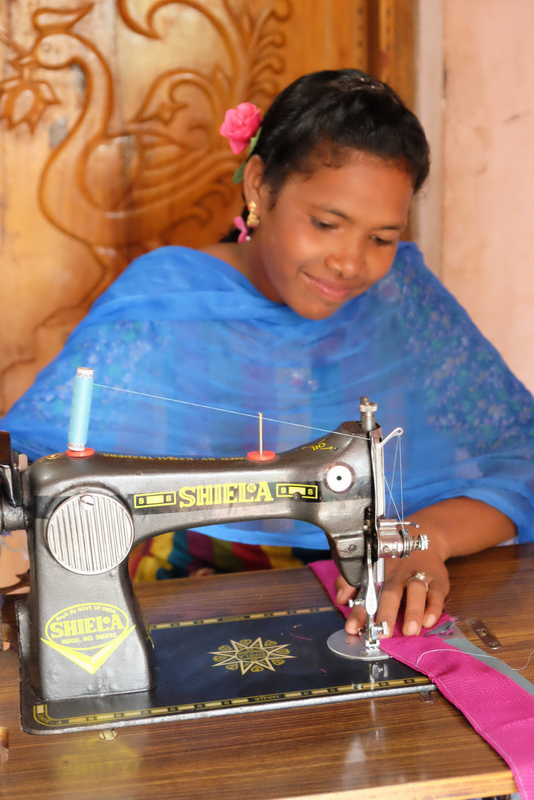 …and Neela, a 15 year old girl whose parents have been able to afford to get her training in tailoring and has set up her own little business at the front of her house.