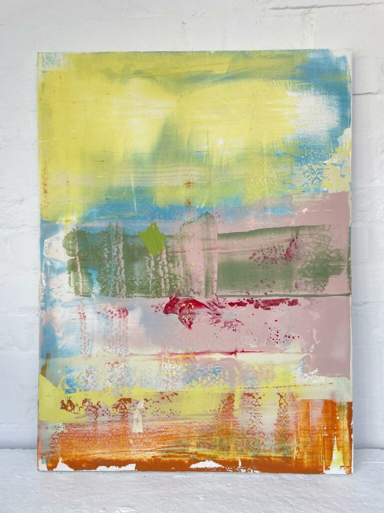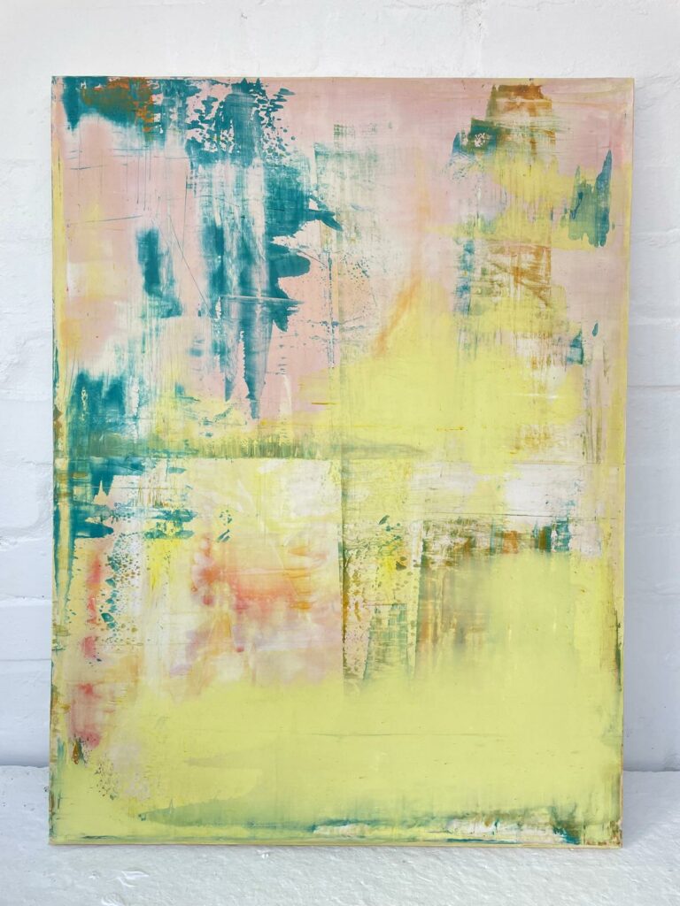 Charles Snell from Aster Muro was introduced to Arup by Frank Water and subsequently commissioned by Arup to create two large-scale frescoes for their new office wall in Bristol. They were designed as a pair to emanate a sense of warmth with areas of pink and yellow, contrasting with cooler, mistier sections in cream and blue, designed to convey the idea of water.