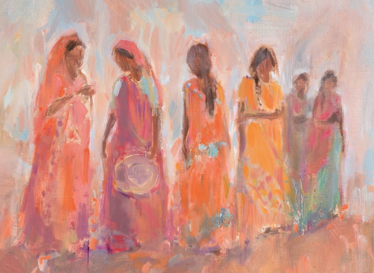 “Before travelling to Rajasthan, I met Katie, and we talked about how we could work together to raise awareness and help fund their projects, bringing safe water, sanitation, and hygiene to communities in need. With that in mind, I found myself drawn to scenes of women carrying water—figures moving with both strength and grace through heat and dust, including one painting titled Burden and Grace. These moments became the heart of this series, and 15% of the sales will go directly to Frank Water’s vital work. Just as I hope my paintings connect people to the beauty and resilience of Rajasthan, Frank Water connects communities to the life-giving resource of water.”