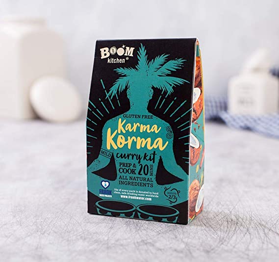 Boom Kitchen donate 10p for every Karma Korma recipe kit they sell. Spice packs to cook your favourite curries from scratch