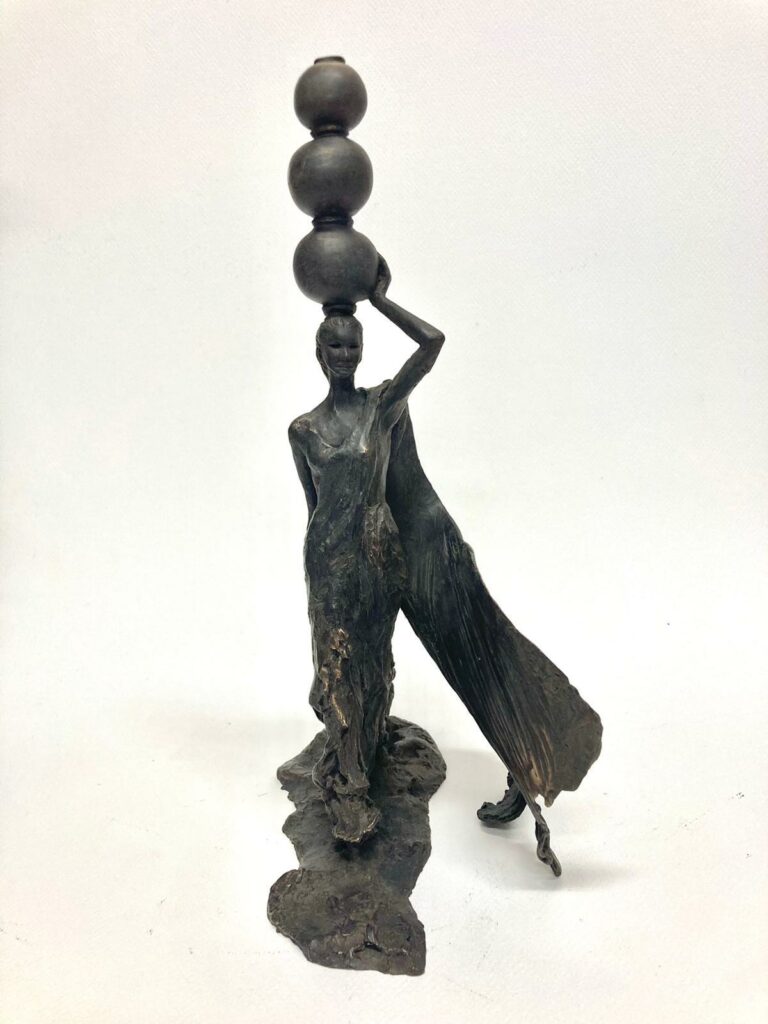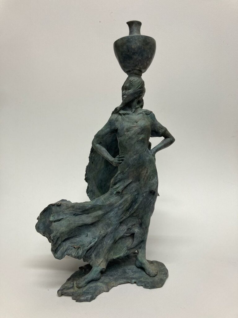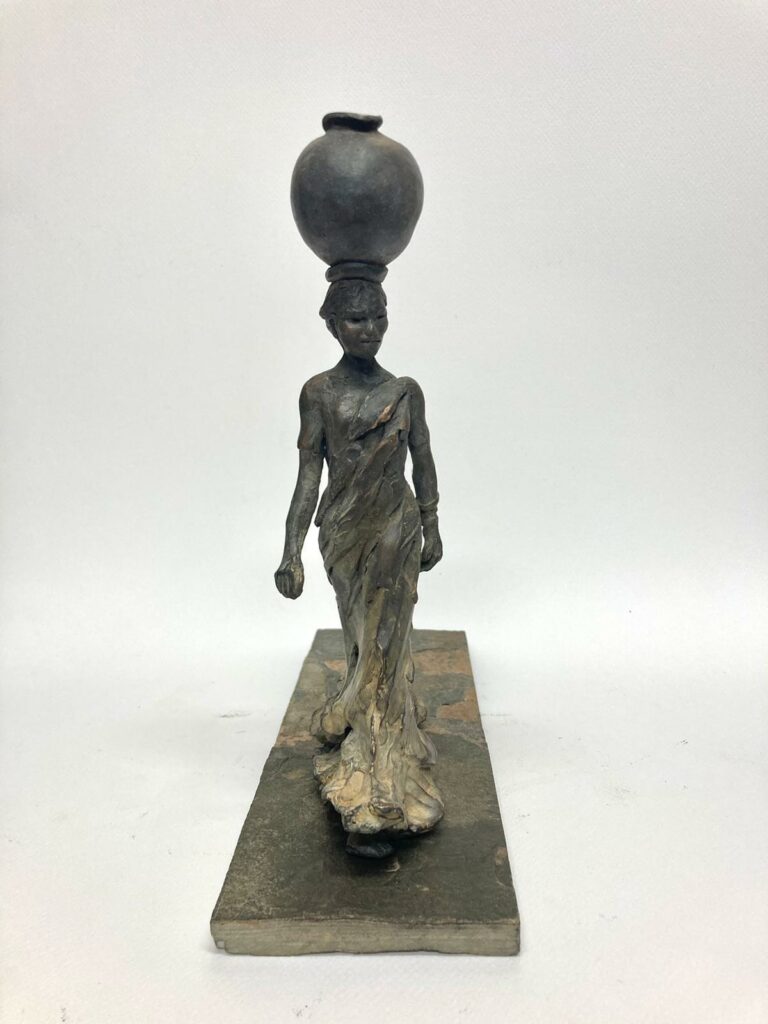 Rebecca has dedicated the past two decades to celebrating the strength of women and girls in adverse circumstances, including those who carry water for their communities. Drawing inspiration from her travels in Nepal and India, particularly with Frank Water, she has created a compelling collection of sculptures that takes us on a journey from life without easy access to water, to the transformative impacts that sustainable access to safe water can bring.