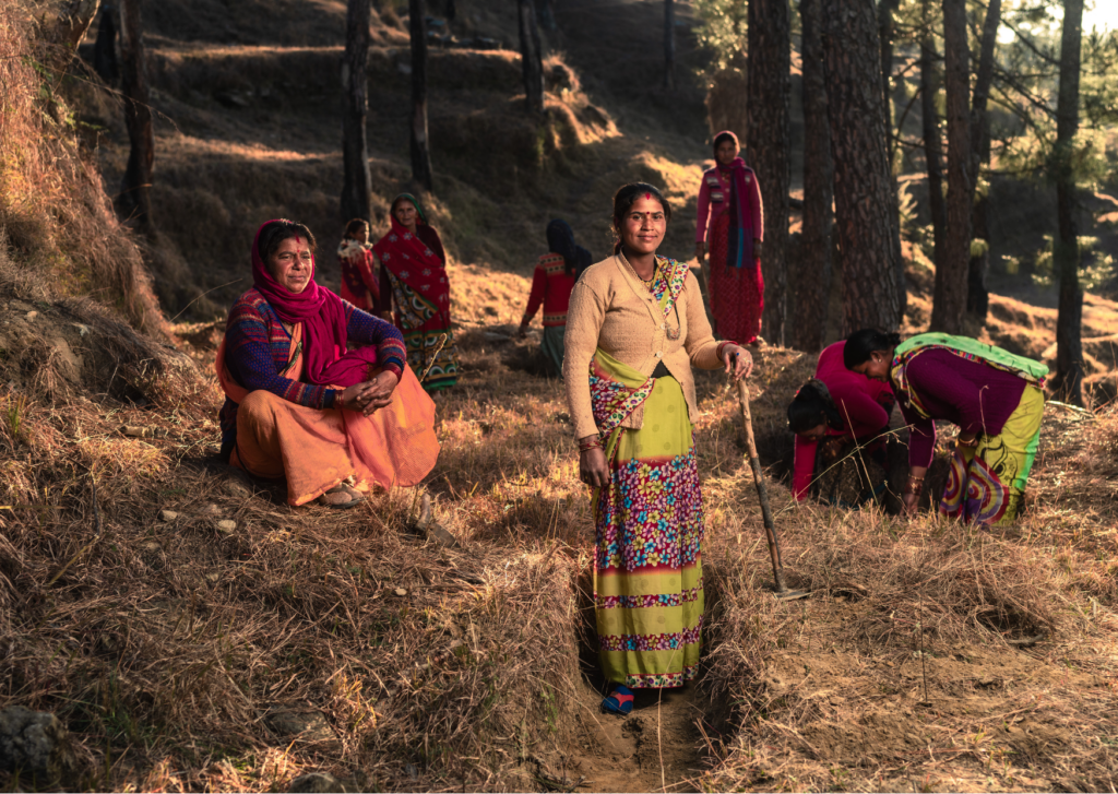 With support from Frank Water, Bauni and other women formed committees to revive their springs using nature-based solutions, planting native trees and digging trenches to restore the water cycle.